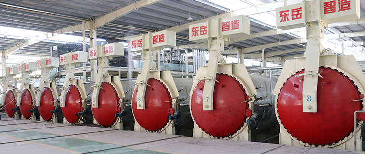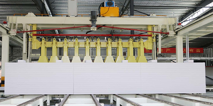 加氣板材經(jīng)過蒸壓釜,坯體獲得最終的強(qiáng)度和性能。出釜后的產(chǎn)品,通過東岳最新研發(fā)的掰板打包系統(tǒng),不但提高產(chǎn)品合格率同時(shí)解決了砌塊、板材同時(shí)分離的難題。